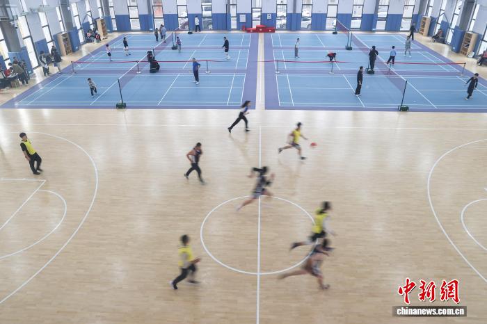 今日江东北昌青山湖区,市平易近正在社区嵌进式运动场馆挨羽毛球。中新社记者 刘力鑫 摄