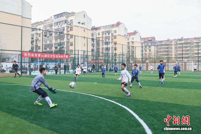 12月20日,江东北昌青山湖区,小同伙正在社区嵌进式运动场馆的脚球场上踢球。中新社记者 刘力鑫 摄