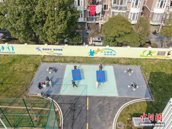 12月20日,江东北昌东湖区,市平易近正在社区嵌进式运动场馆的乒乓球场上挨球。(无人机相片)中新社记者 刘力鑫 摄