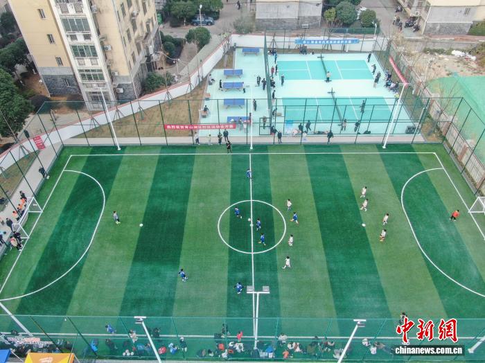 12月20日,江东北昌青山湖区,小同伙正在社区嵌进式运动场馆的脚球场上踢球。中新社记者 刘力鑫 摄