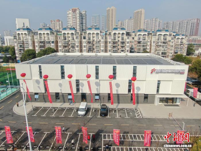 12月20日,江东北昌东湖区,航拍社区嵌进式运动场馆,该场馆采纳散拆箱货柜外型,取四周的铁道货场产业秘闻相照应。(无人机像片)中新社记者 刘力鑫 摄
